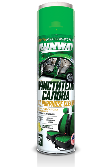 Предназначен для удаления разнообразных загрязнений и пятен с изделий из ткани, велюра, ковровых покрытий и т. п. Быстро удаляет даже глубоко въевшуюся грязь. Удаляет неприятные запахи и освежает воздух в салоне автомобиля. Придает материалам антистатические свойства. Очиститель RUNWAY удаляет большинство свежих пятен от чая, кофе, молока, соков, крови, губной помады, машинного масла и т.д. Применяется для очистки всего интерьера автомобиля
